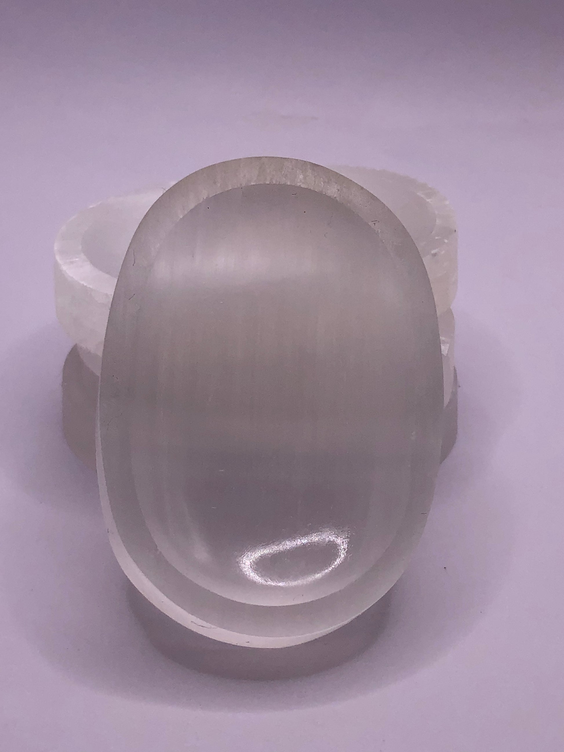 Selenite is a translucent and naturally occurring form of gypsum, known for its white appearance. Selenite is believed to have cleansing properties, both for physical spaces and energy fields. Placing crystals, jewelry, or other objects in a selenite bowl is thought to cleanse and recharge their energy. People often use selenite bowls to clear away negative energies and maintain the positive vibrations of their crystals or personal items.
